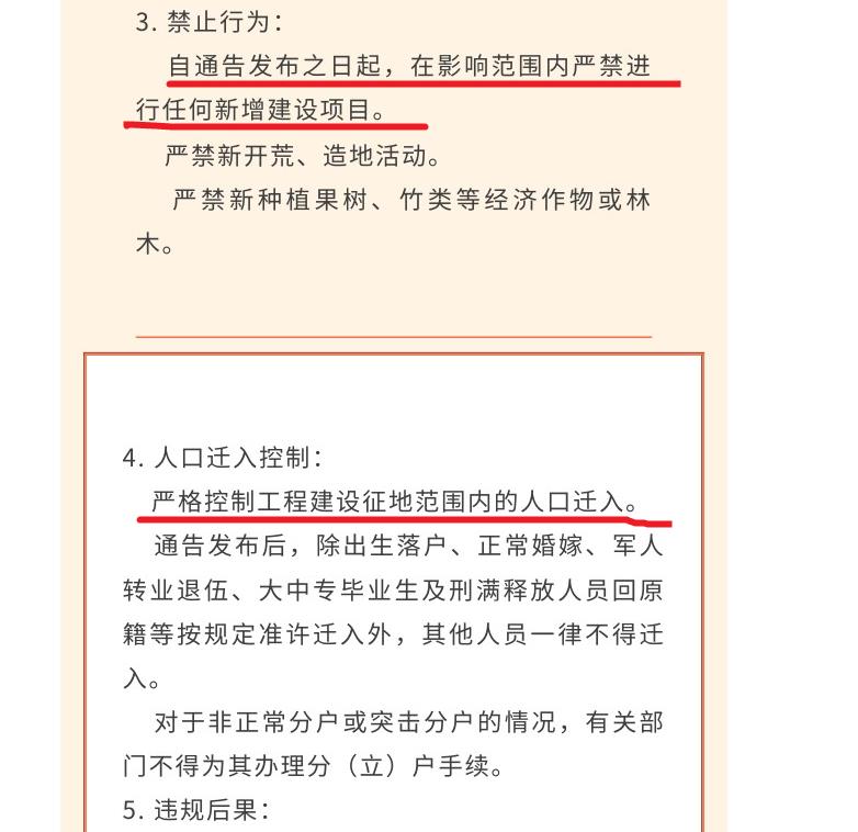 其他人员一律不得迁入;将不被纳入工程扶植实物查询拜访和弥补范畴。详见附件。防止因新增扶植项目和生齿迁入而影响工程扶植和弥补工做。违反布告的行为,