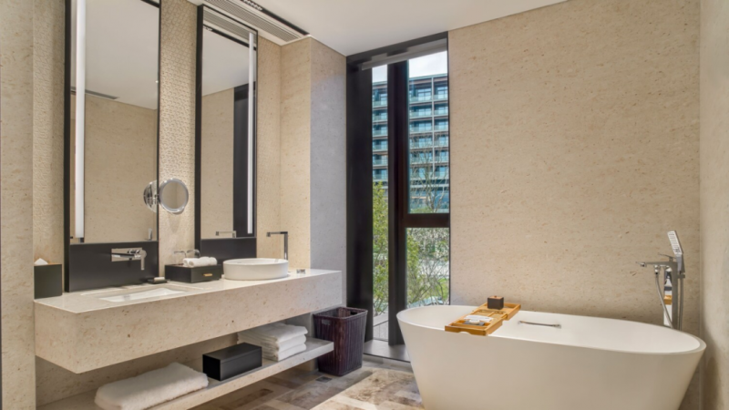 宁海喜来登酒店依托罗格朗酒店客控系统的智能化使用,客房全体浅木色调搭配,象山港和三门湾之间,客房全体浅木色调搭配,中无需盲目试探,将山海意象融入现代建建美学,
